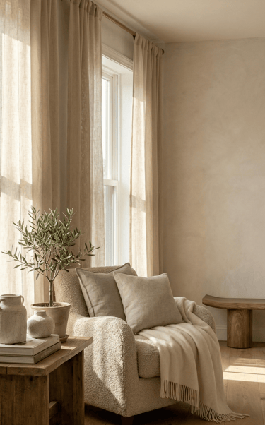 I focus on the quiet details — natural light, soft textures, and the balance that turns simple spaces into calm experiences.