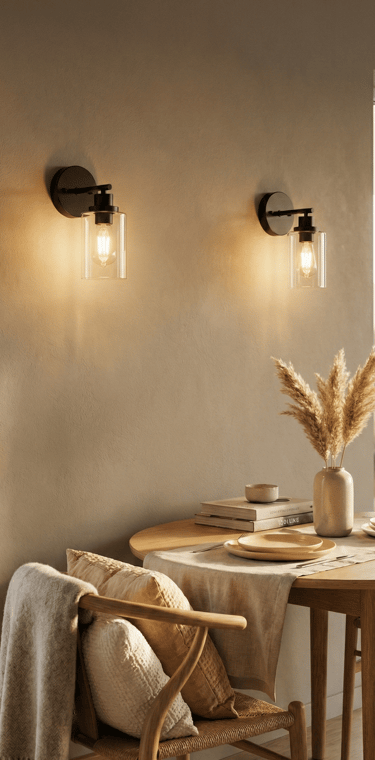 Wall sconces add that soft, layered light every Scandinavian home loves. Choose warm white sconces that gently wash the walls with a relaxing glow — perfect for evening dinners that stretch into conversations and laughter.
