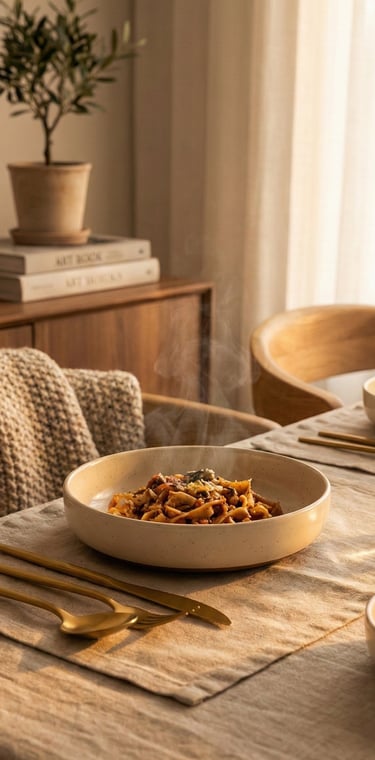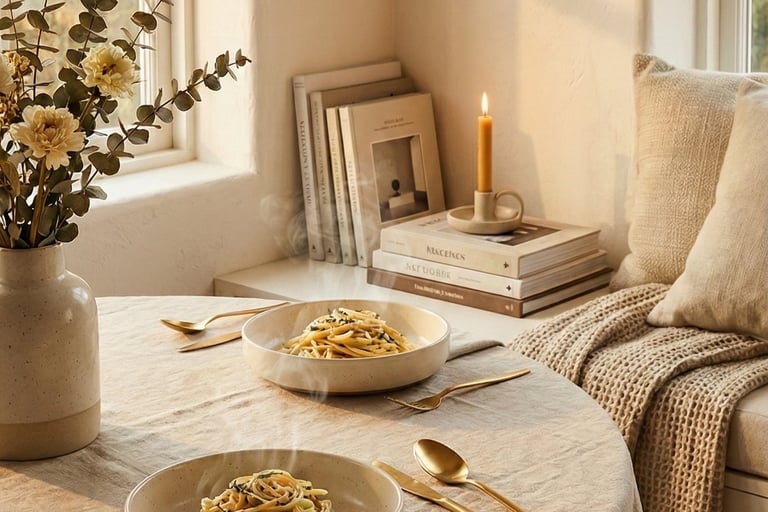 Everyday dinners get an upgrade with matte gold cutlery or smooth stoneware bowls. These small touches make the experience feel more special — little luxuries that elevate the moment.