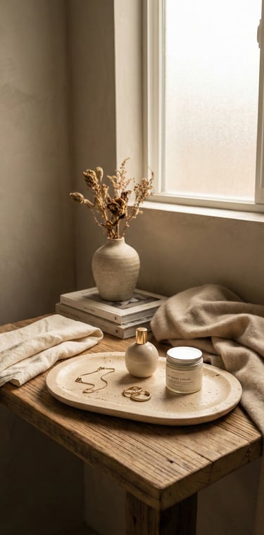 Keep your jewelry, perfume, or skincare organized on a minimal ceramic tray. It adds elegance and gives every little item a home.