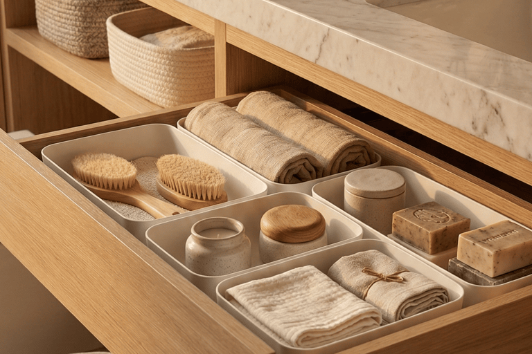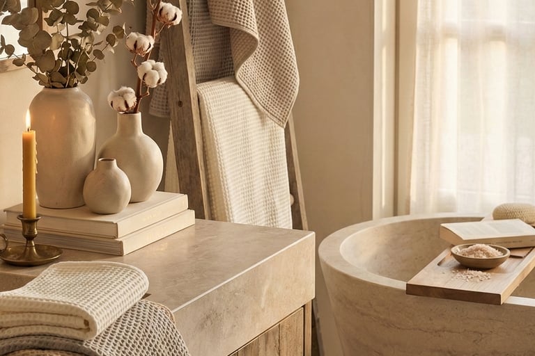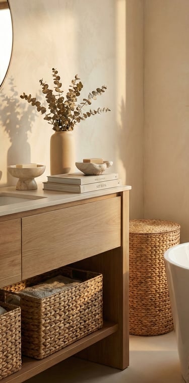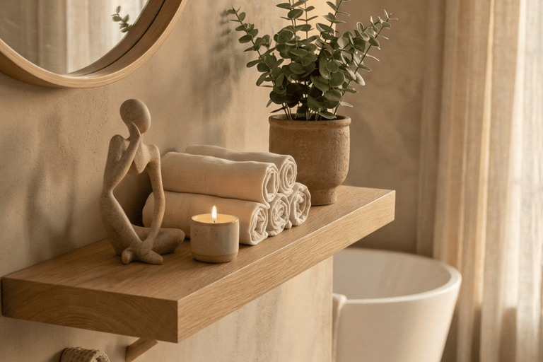 Choose natural materials, warm light, and thoughtful details. When your bathroom feels calm and beautifully organized, every moment becomes a little more like a spa day at home.