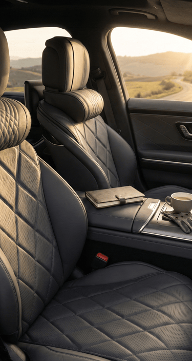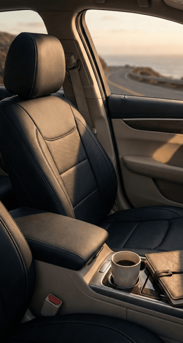 Protecting the interior doesn’t have to come at the cost of design. Well-fitted seat covers in neutral tones preserve the original look while adding a subtle layer of texture. When paired with matching headrest covers, the result feels intentional rather than temporary — protection that looks like it belongs.