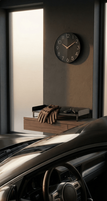 For many car enthusiasts, the garage is part of the experience. Small design elements like a modern garage wall clock or a minimal storage tray help tie the space together. These details turn the garage into more than a storage area — it becomes a place where the car lifestyle continues, even when the engine is off.