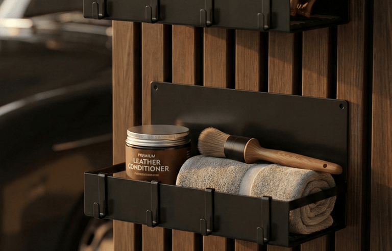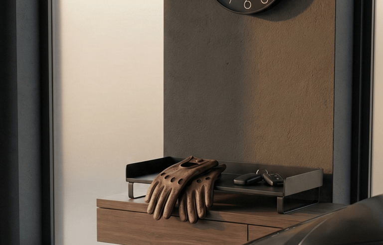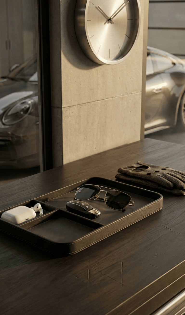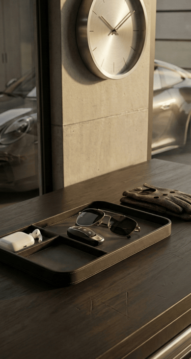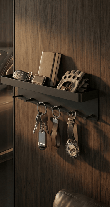 The most refined setups are often defined by what happens outside the car. A simple wall-mounted key organizer or small garage tray creates a dedicated place for everyday essentials. This final detail brings structure to the routine, reinforcing the idea that every part of the car lifestyle has its place.
