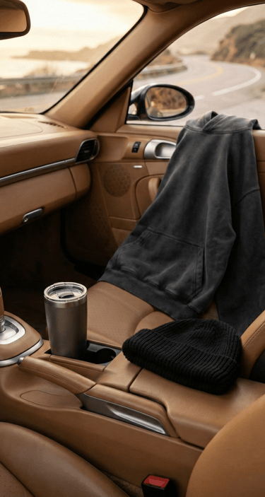 The car aesthetic often extends to what you wear around it. Neutral clothing pieces like a clean beanie or understated cap complement nearly any car style without drawing attention away from it. Combined with a simple hoodie or jacket, these items feel natural in both daily use and automotive settings, reinforcing a relaxed, confident image.