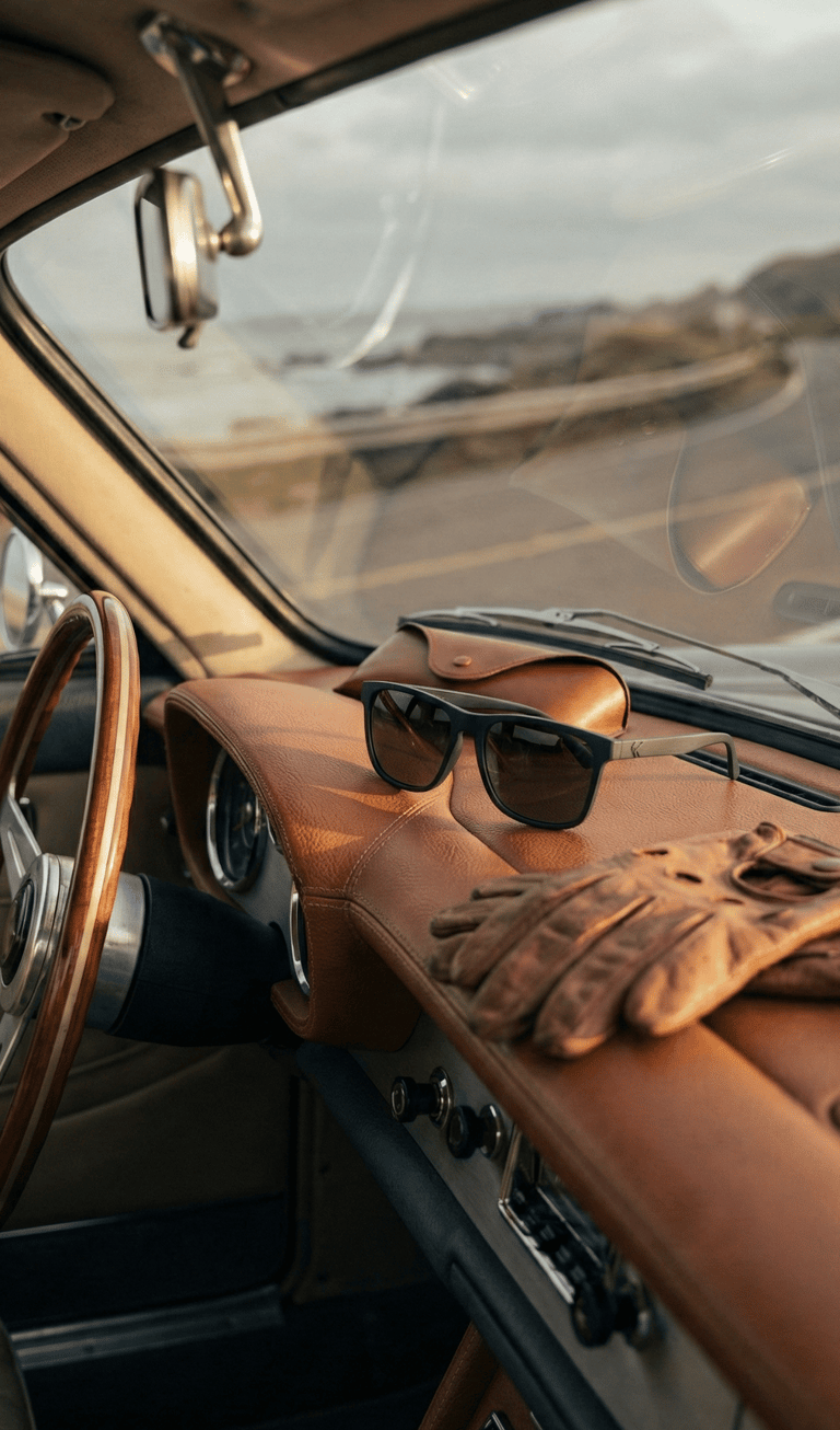 Car aesthetics don’t end at the dashboard. What you wear while driving becomes part of the overall image. A pair of classic sunglasses with clean lines and neutral tones complements nearly any car style, whether modern or vintage. Paired with a minimal leather sunglasses case, it adds a sense of cohesion — effortless, understated, and always appropriate.
