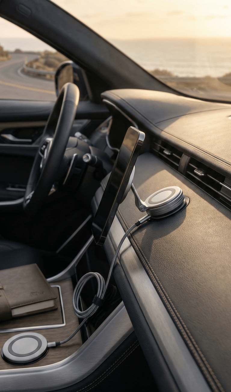 Navigation is essential, but clutter isn’t. A minimal car phone mount keeps your phone exactly where you need it while remaining visually quiet. Designs that attach cleanly to vents or dashboards blend into the interior rather than interrupt it. Paired with a short charging cable, the setup feels deliberate and distraction-free, preserving the car’s original design language.