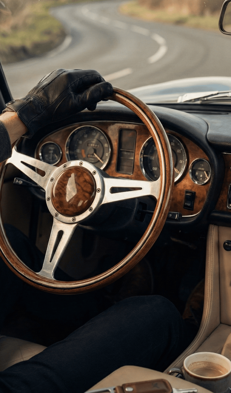 There’s a reason leather driving gloves have remained a symbol of classic motoring for decades. They create a tactile connection between your hands and the steering wheel, adding both comfort and control. On cooler mornings or long evening drives, they become part of the rhythm — enhancing grip while reinforcing a calm, confident driving aesthetic. When chosen in neutral tones, they feel timeless rather than theatrical.