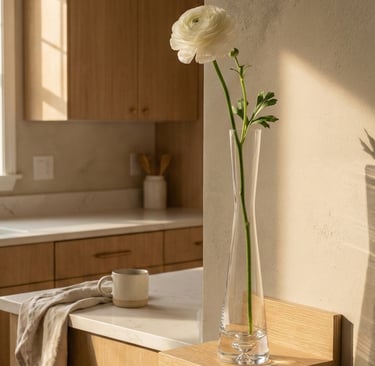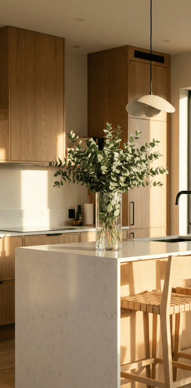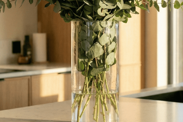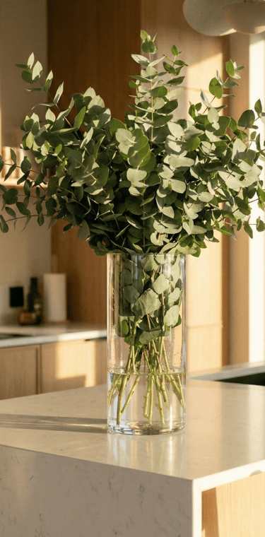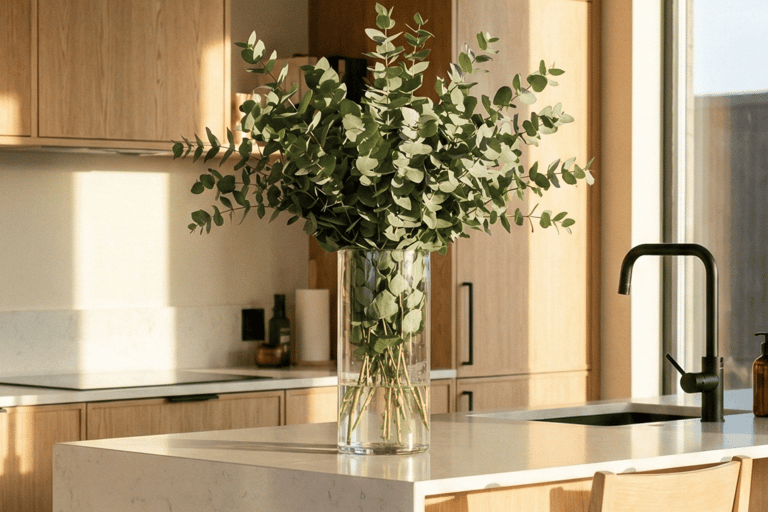 Nothing brings a Nordic kitchen to life like eucalyptus. It adds movement, height, and a sense of freshness.